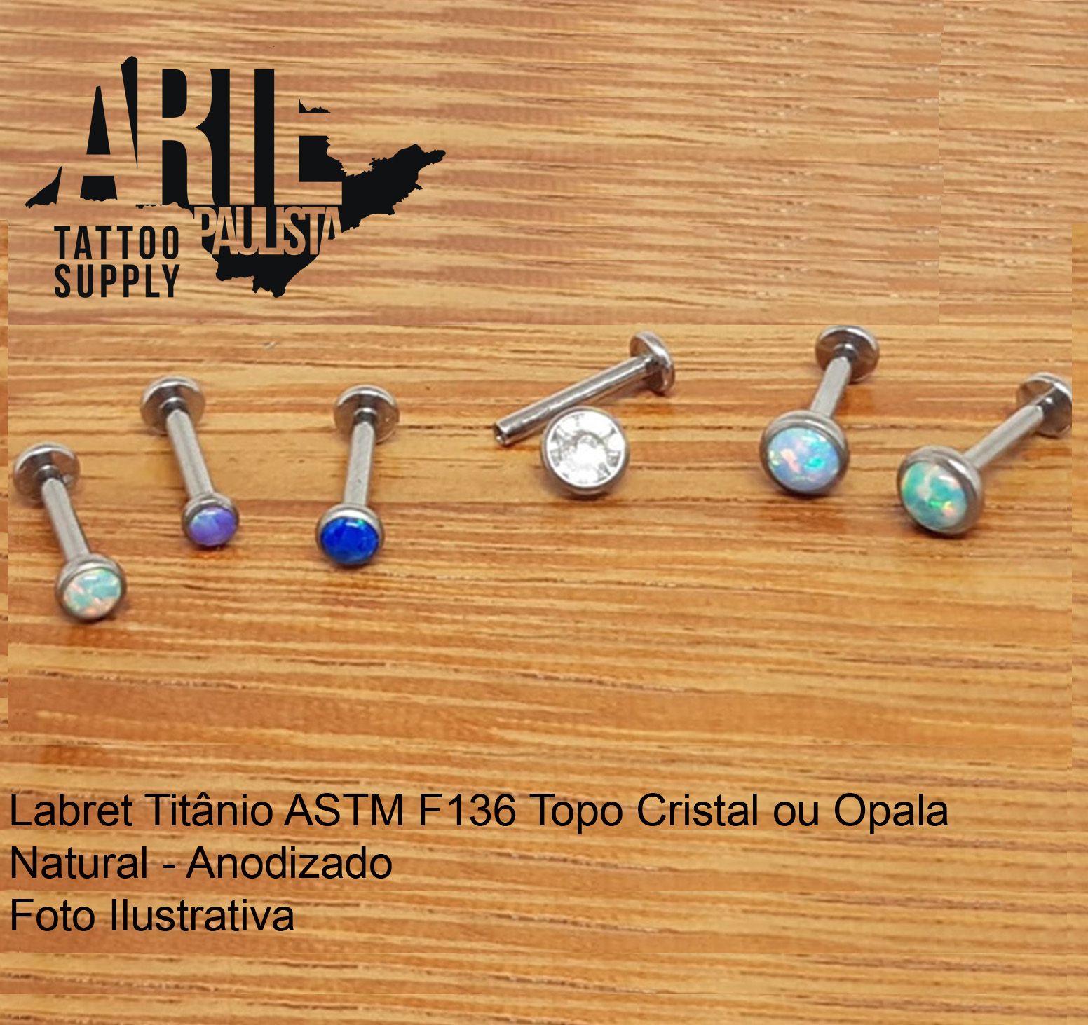 Labret Titânio ASTM F136 Rosca Interna Topo Cristal ou Opala