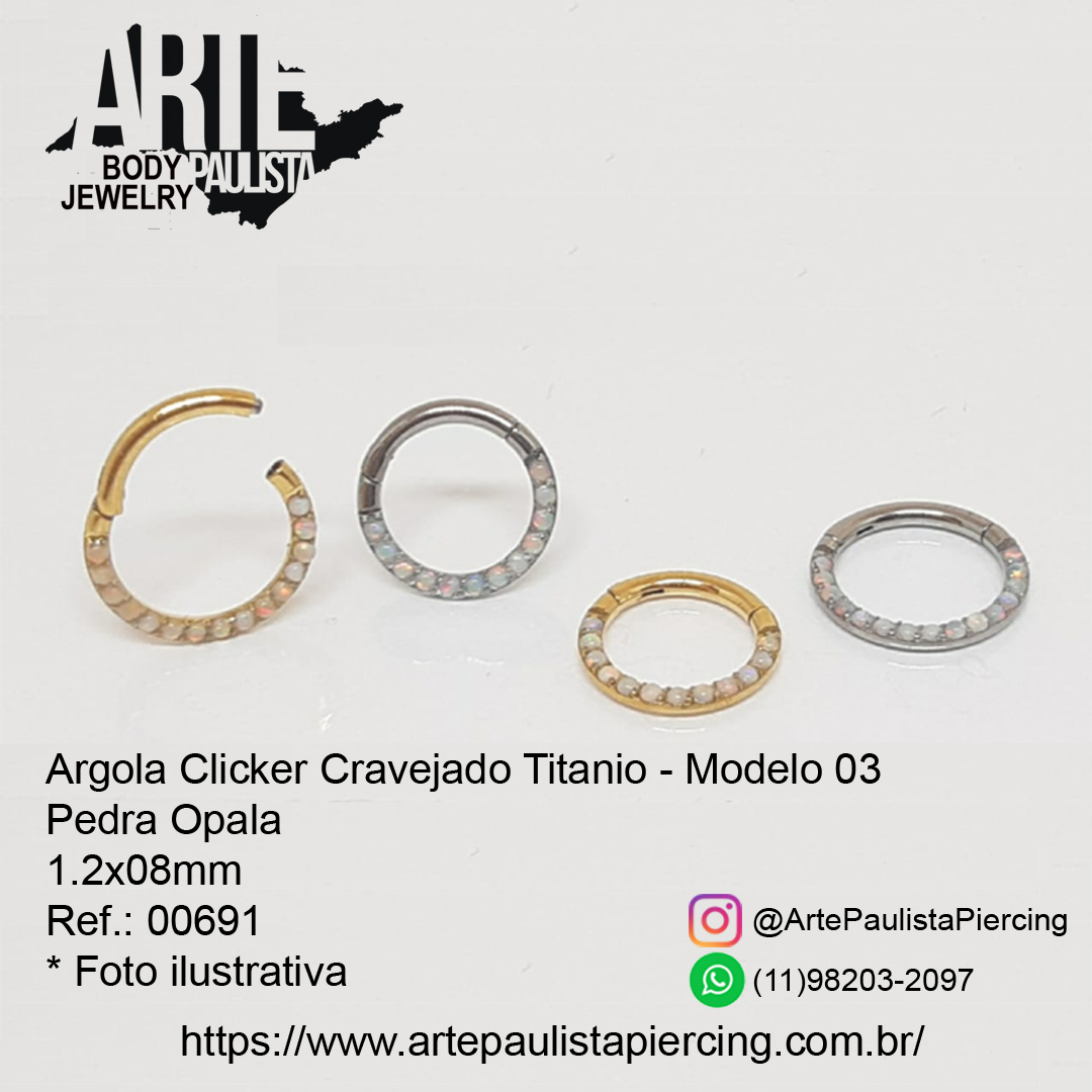 Argola Clicker Cravejado Titanio - Pedra Opala